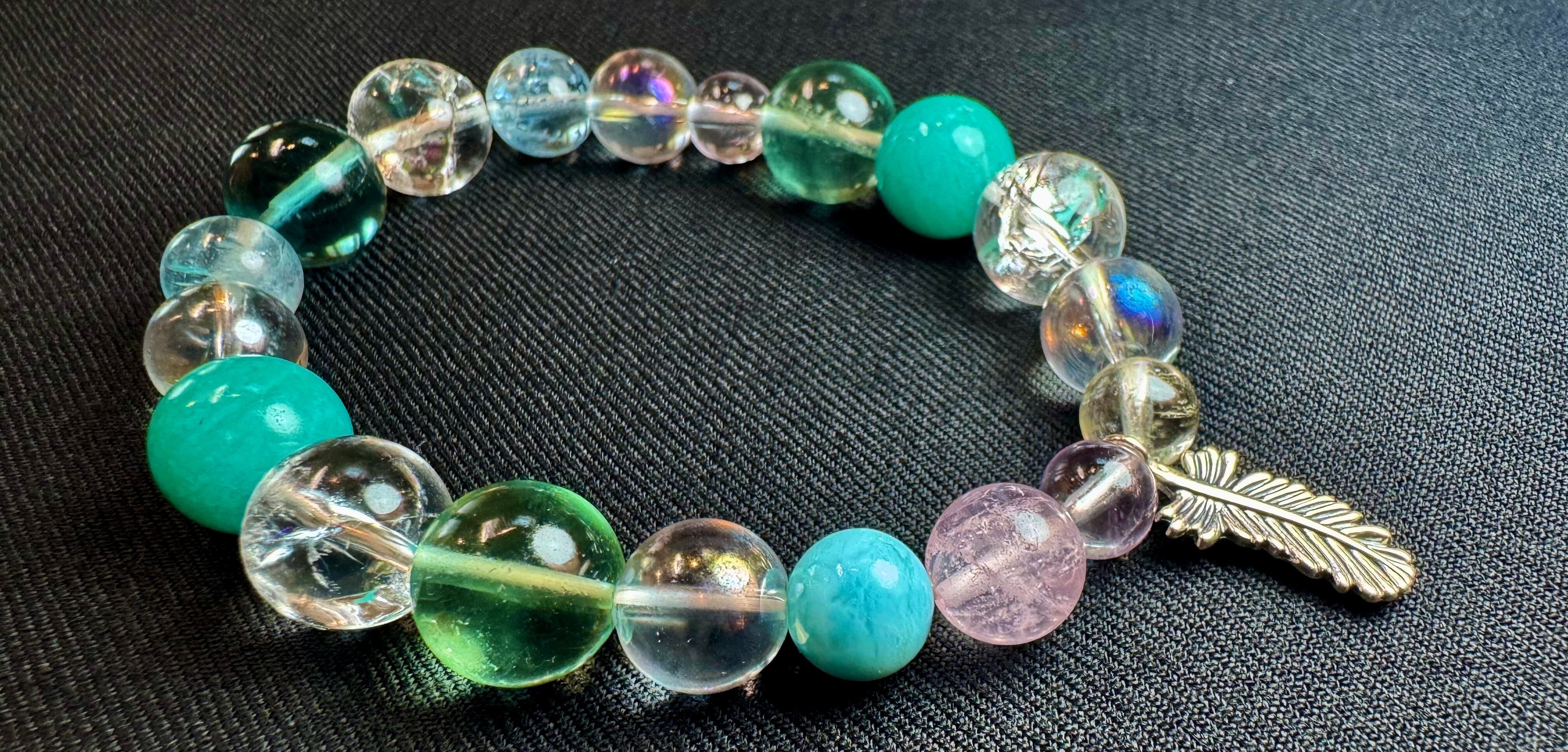 [オーダー作品]羽根のチャームの天然石ブレスレット