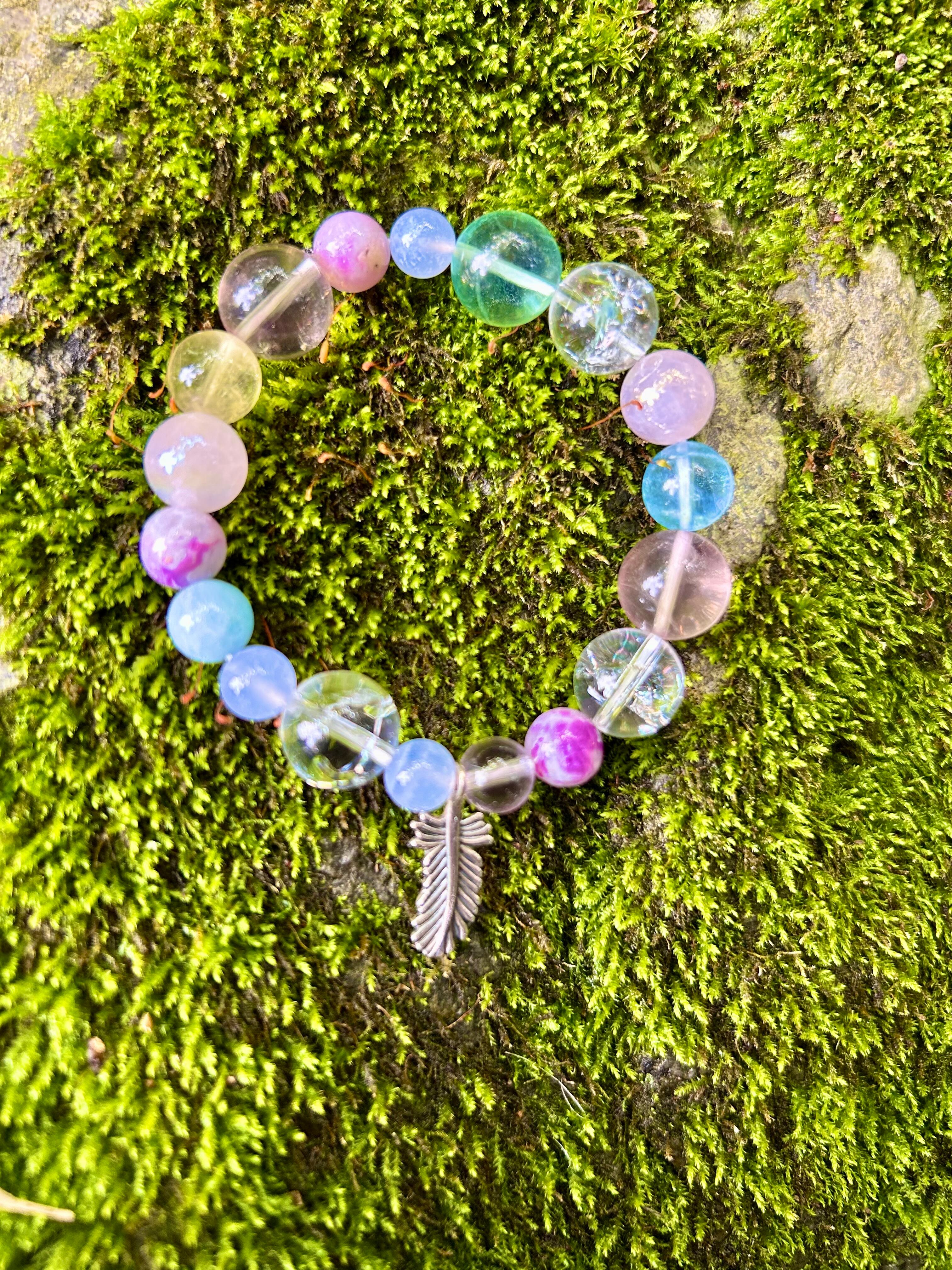 手首のサイズに合わせてお作りします。天然石と、シルバー950のオリジナル天使の羽根チャームを使用。